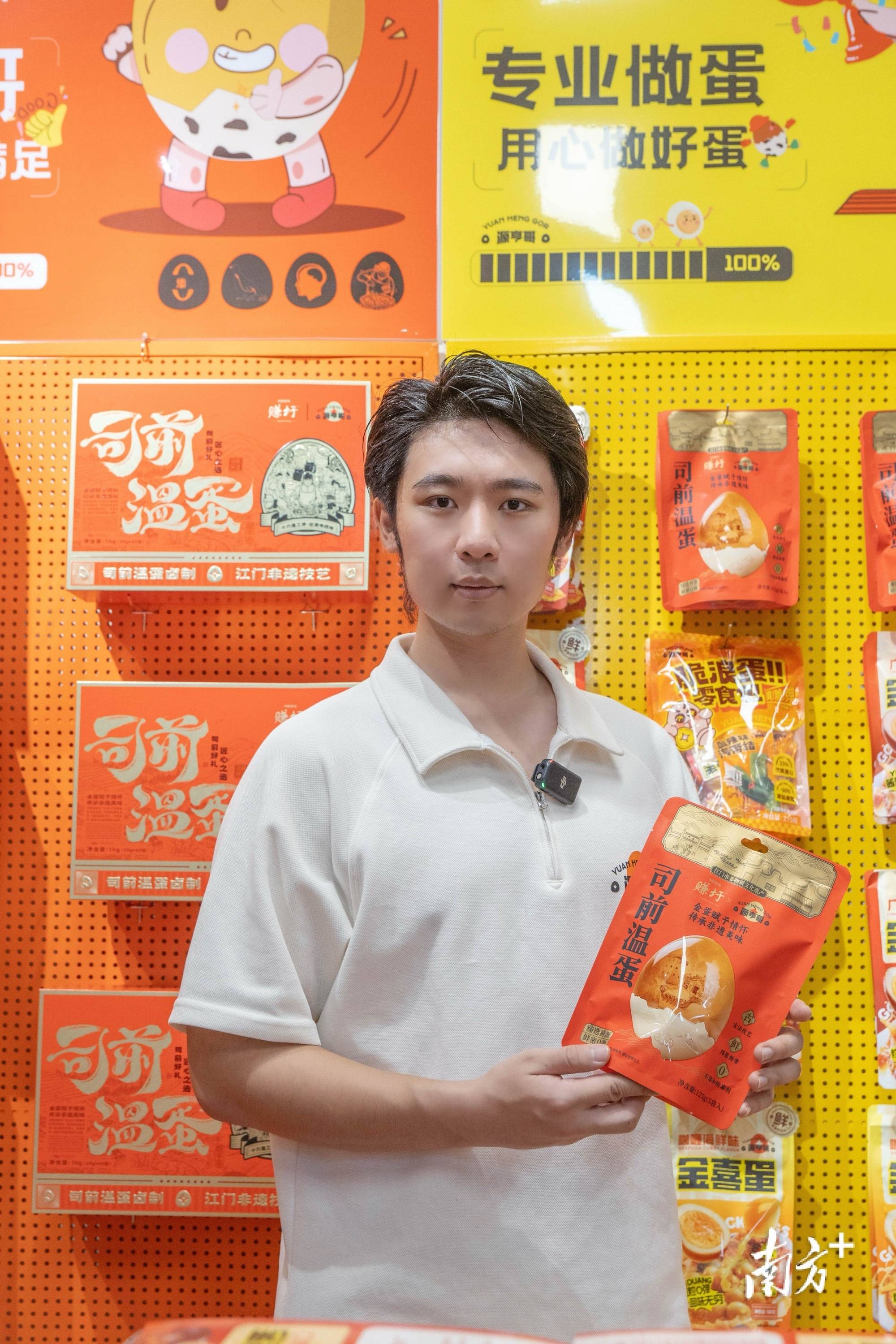 这位青年正是江门市源亨哥食品有限公司(下称“源亨哥食品”)董事长、创始人凌源亨。他曾在韩国留学,学成归国后,怀着对家乡味道的眷恋,选择了一条传承非遗美食、助力“百县千镇万村高质量发展工程”的创业道路,将童年记忆中的司前温蛋变成走向世界的“金蛋”。