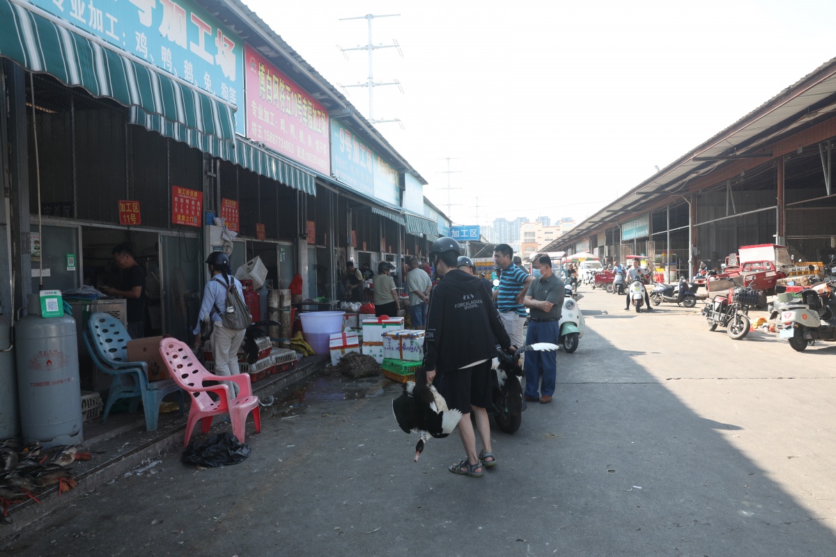 活禽加工场所同样是一派繁忙景象。12个加工档口前都围满了人,市民们拎着选好的鸭子排队等待处理。一位加工店老板刚交完一批处理好的鸭子,下一位市民就立刻将手里的鸭子递了过去。12号档口,老板忙完一阵后终于有空回应记者:“这两天我已经加工了几千只鸭子了。”